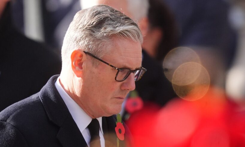 Prime Minister Sir Keir Starmer at the Remembrance Sunday service at the Cenotaph in London. Pic: PA