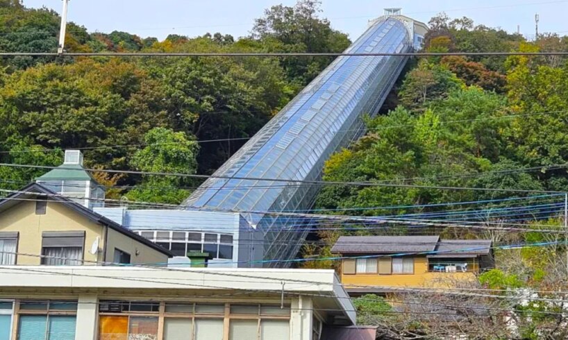 Elevators are known for moving vertically, but sometimes you can come across rare “inclined” varieties, known as “shakou elevators” in Japanese. However, in a nature-filled area in a quiet pocket of Yamanashi Prefecture, you’ll find an even rarer “chou kyodai na shakou” elevator, which translates as “super huge inclined elevator“.