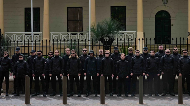 The National Socialist Network holding a rally outside parliament in Sydney on November 8. Credit: Flavio Brancaleone