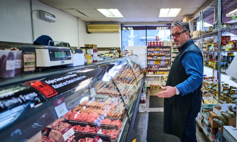 Nick Gasparro shows the variety of prime meat cuts for sale at Vince Gasparro’s meat market in Toronto on Nov. 12, 2025.Sammy Kogan/The Globe and Mail