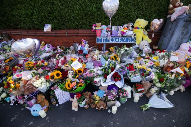 Floral tributes on the junction of Tithebarn Road and Hart Street in Southport, near the scene where three children were fatally stabbed at a Taylor Swift-themed holiday club(Image: James Speakman/PA Wire)