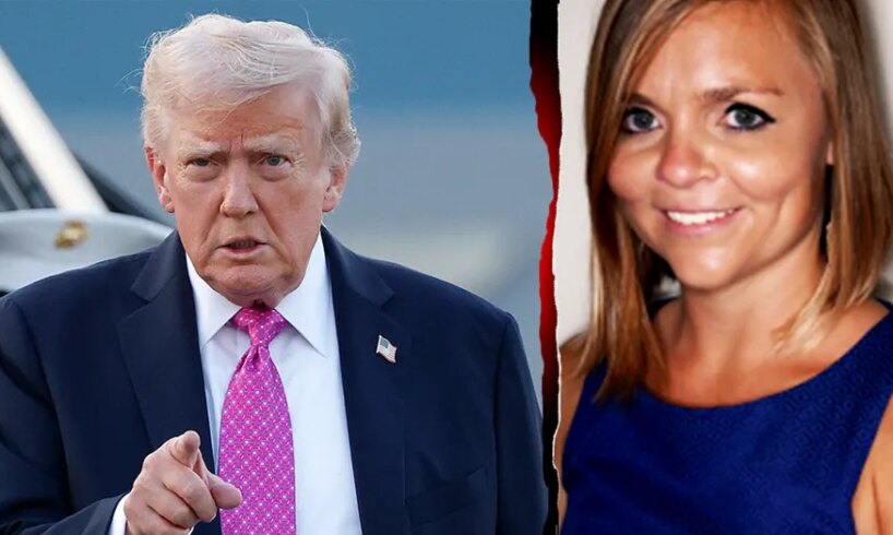 Left: President Donald Trump walks to Air Force One at Morristown Airport on Sept. 14, 2025, in Morristown, New Jersey. Right: A headshot of UCLA professor Caroline Luce taken on an unknown date. (Kevin Dietsch/Getty Images; UCLA)