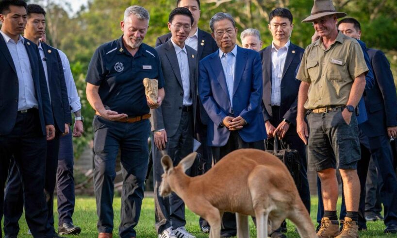 One of China’s top-ranking political figures has posed with local wildlife on his four-day visit Down Under – just days after Penny Wong reiterated Australia’s relationship with the eastern superpower was “very consequential” for the Pacific.
