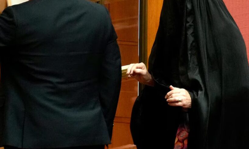 It’s the second time in her political career that she has appeared in the chamber wearing the burka. Hanson’s stunt came after she was blocked from introducing legislation to ban the face covering.