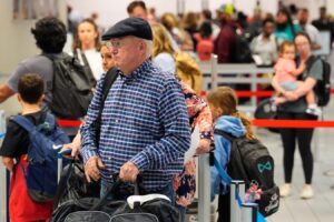 Travelers at O’Hare International Airport (ORD) in Chicago, Illinois, US, on Monday, Dec. 23, 2024. The Transportation Security Administration (TSA) anticipates screening 40 million passengers this holiday season. Photographer: Vincent Alban/Bloomberg via Getty Images
