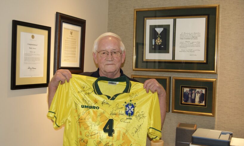 Attaway was invited to Brazil by their president. He said that when he landed in Rio de Janeiro, there were about two million people waiting. They boarded buses and he says it was like driving through “ants” with the sea of people. He remembers how special it was, because it was the last time many of the soccer stars would play together, since they were playing for different European teams. “I was asked by the Brazilian ambassador to the United States to come back before the World Cup, to meet the president in Washington, DC, at their embassy,” he said. “We were asked by the ambassador of Brazil to San Francisco to an event where they brought me up on stage and honored me with the medal that they give to diplomats.” Attaway has this medal hanging in his office at his home, along with a signed jersey and soccer ball.