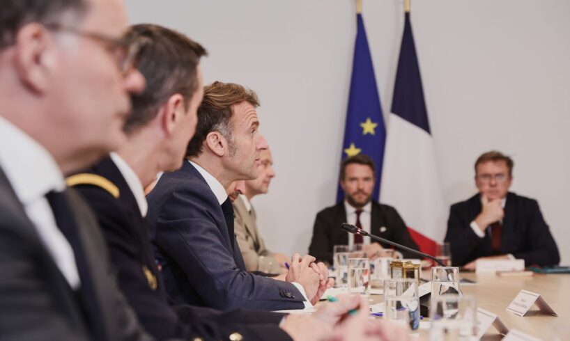 French President Emmanuel Macron, third left, attends a video conference of the ‘Coalition of the Willing’ on Ukraine at the Elysee Palace in Paris, France, Tuesday, Nov. 25, 2025 [AP Photo/Teresa Saurez]