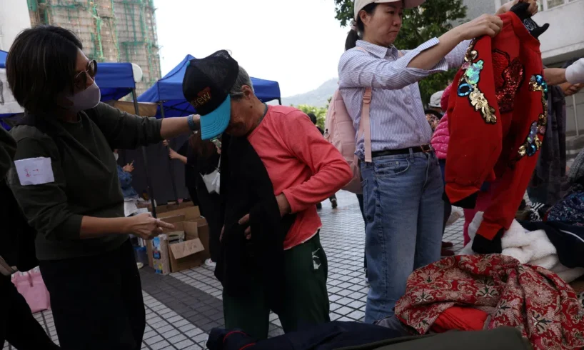 Some elderly residents queued at a medical station in a shelter for fresh supplies of medication for longer-term conditions including high blood pressure and diabetes, while others stocked up on free supplies offered by volunteers in an adjacent housing estate, including clothes and bedsheets.