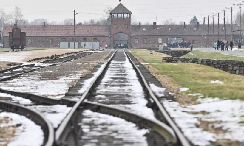 Survivors light candles as they pay tribute to the Holocaust victims during the ceremony for the 80th anniversary of the liberation of the Auschwitz camp on January 27, 2025 in Oswiecim, Poland (Photo: Sean Gallup/Getty Images) Getty Images