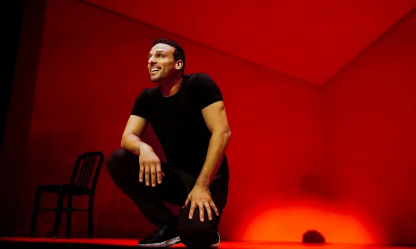 Throughout the show, Stachel performs these transformations with disarming self-deprecation and physical precision—his voice shifting between accents, his body language morphing to match each attempted identity. The piece moves fluidly between confession and stand-up, using humor to soften the painful edges of these constant reinventions.