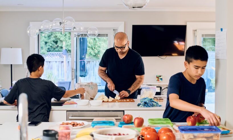Children prepare school lunches with their father in Toronto. The average family of four is expected to spend more than $17,500 on groceries next year.Gabriel Hutchinson/The Globe and Mail