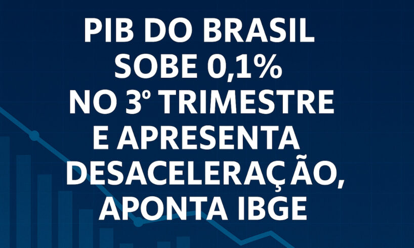 O PIB do Brasil sobe 0,1% no 3º trimestre e apresenta desaceleração, aponta IBGE, segundo dados divulgados nesta quinta-feira (4) pelo Instituto Brasileiro de Geografia e Estatística.