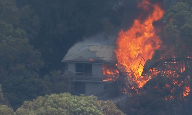 FOLLOW EMERGENCY BUSHFIRE UPDATES HERE.A helicopter was seen dumping large loads of water over the firezone. (Nine)Multiple homes have been damaged or destroyed as an out-of-control bushfire bears down on part of the NSW Central Coast, about an hour north of Sydney. (Nine)