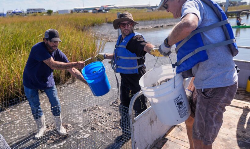 The oysters are collected from restaurants, stuffed into bags and stacked just off shore to form the reefs. The program, launched in 2014 by the Coalition to Restore Coastal Louisiana, has recycled more than 16 million pounds (7.3 million kilograms) of shells in that time. That’s enough to protect about 1.5 miles (about 2.4 kilometers) of shoreline.
