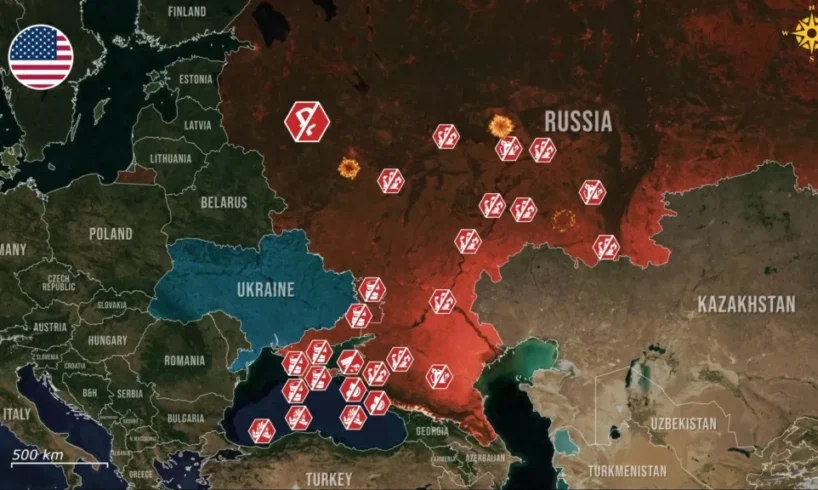 The Ryazan mega-refinery, one of Russia’s largest, was repeatedly targeted, with strikes on secondary processing units and jet-fuel capacity confirmed by Ukraine’s General Staff. The plant produces 840,000 tons of jet fuel annually for the Russian air force, making the strike a significant success in both economic and military terms.