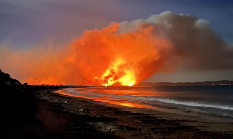 Aerial view of the Dolphin Sands bushfire in November 2023. (Supplied: Tasmania Police)