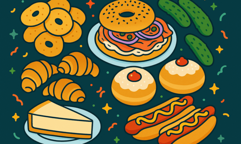 When it comes to snacking, Jews know all of the best ways to nosh. From cheesecake on the Shavuot dessert table to pickles tucked into your hamburger, Jewish communities have shaped what Americans have been munching on for generations. Some of these treats are unmistakably Jewish — think hummus, rugelach, or a tasty black & white cookie — while others (looking at you, knishes and coleslaw) were born from Jewish ingenuity and creativity. Together, they all tell a story of tradition, reinvention, and a whole lot of flavor.
