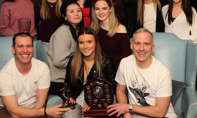 Killarney Celtic U-17 girls player of the year Grainne Kelliher with team coaches David MacIndoe and Mike Casey and teammates at the Killarney Celtic annual awards and Christmas party in The Killarney Avenue Hotel on Friday night. Picture: Eamonn Keogh