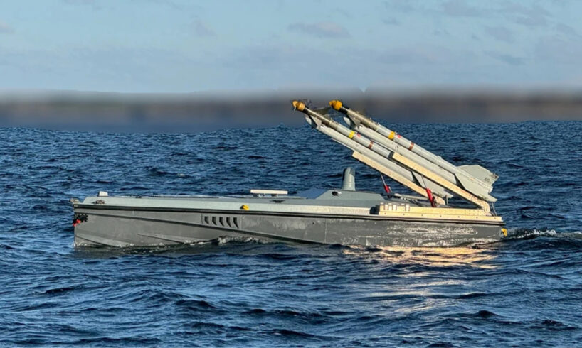 A Magura V7 marine drone armed with AIM-9 Sidewinder missiles