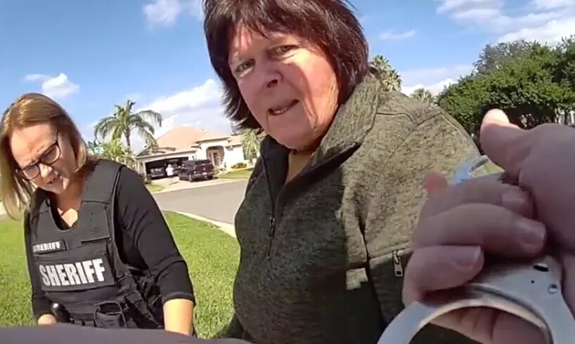The footage, obtained by FOX 35 Orlando, shows Marion County Sheriff’s Office deputies approaching Newton as she walked her dog, and a neighbor is heard joking, “Uh oh, they’re coming for you, Sharon!”