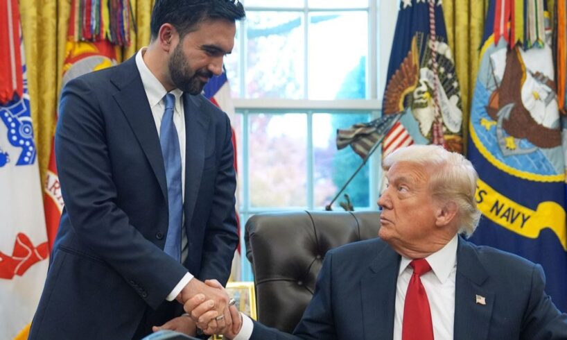 President Donald Trump shakes hands with New York City Mayor-elect Zohran Mamdani in the Oval Office of the White House, Friday, Nov. 21, 2025, in Washington. [AP Photo/Evan Vucci]
