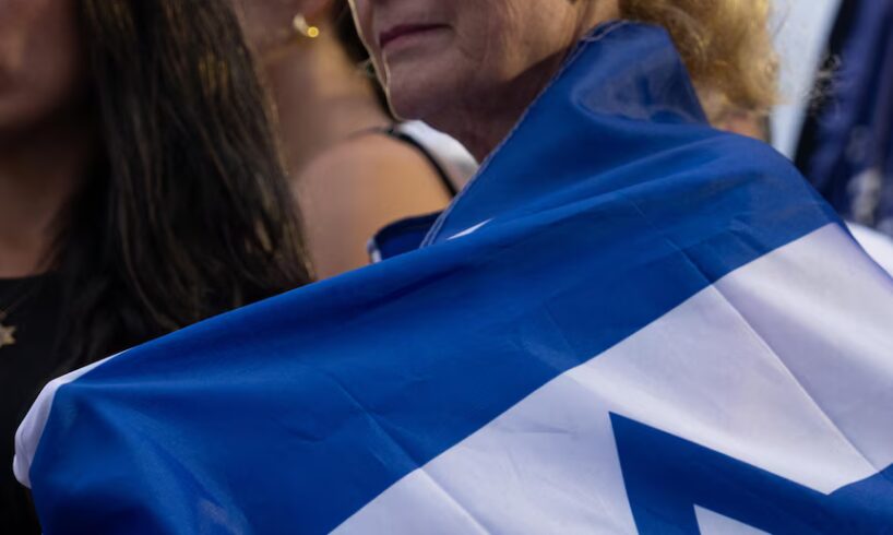 The vigil wrapped up a national day of reflection, marked in Sydney by the flag on the Harbour Bridge flying at half-mast and a plane passing over Bondi Beach reading “Love from Aus for our Jewish Community”.