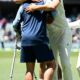 Matilda’s parents embrace as Waltzing Matilda is sung. (ABC News: Che Chorley )
