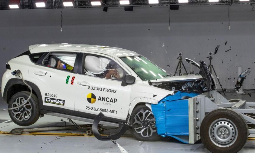 ANCAP said the zero score was due to “high head acceleration” and “excessive neck tension” recorded for the child-sized dummies, contributing to the Fronx’s overall one-star rating.