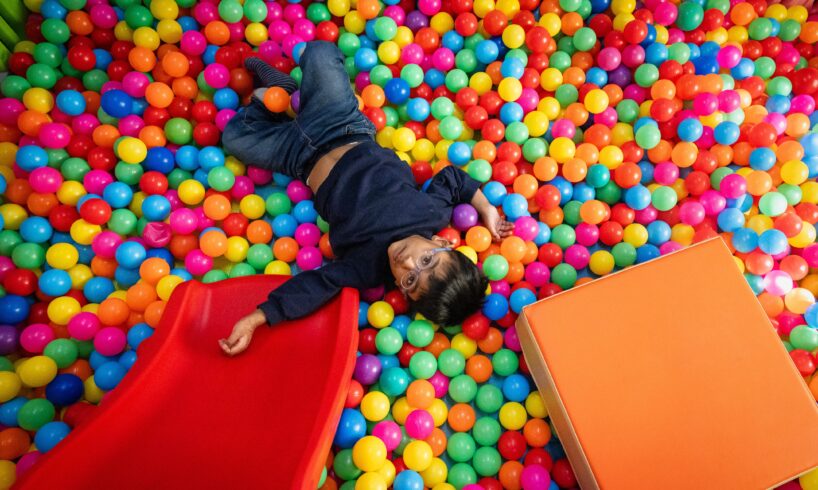 [“I got to chase Adiah and Adrial around with my camera in their home, and at their boisterous birthday party at a play place. Adrial, pictured here, was repeatedly climbing a slide and dropping into a ball pit.”]