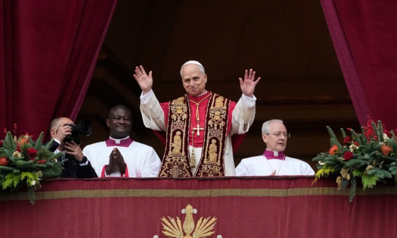 Pope Leo XIV waves Thursday after delivering the Urbi et Orbi (Latin for ‘to the city and to the world’ ) Christmas blessing from the main balcony of St. Peter’s Basilica at the Vatican.