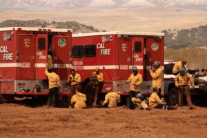French firefighters engines parked on front of a wildfire near Fraissé-des-Corbières, southwestern France, on August 6, 2025. LIONEL BONAVENTURE / AFP French firefighters on Wednesday, August 6 battled to halt the spread... Read more »