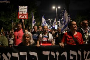 Israelis protest in support of Israeli Attorney General Gali Baharav-Miara, as they demand the end of the war in Gaza and release of all hostages, in Tel Aviv, August 3, 2025. SHIR... Read more »