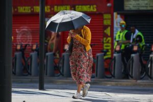 Open this photo in gallery: Commuters try to stay out of the sun as Toronto grapples with a heat wave on June 23, 2025. According to Health Canada, people with low incomes,... Read more »