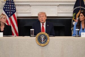 Elevenlabs AudioNative Player President Donald Trump speaks during a roundtable meeting on antifa in the State Dining Room at the White House, Wednesday, Oct. 8, 2025, in Washington, as Attorney General Pam... Read more »