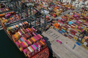 An aerial view picture of the port of Santos, the largest port complex in Latin America and one of the largest in the world, taken on Thursday in Santos, Sao Paulo state,... Read more »